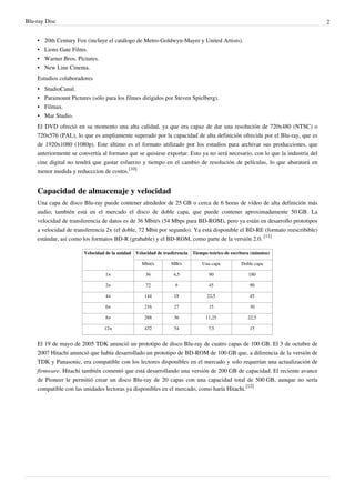 El Blu-ray es un formato óptico de almacenamiento de alta densidad que puede almacenar hasta 25 GB por capa, superando la capacidad del DVD. Se impuso frente a su competidor HD DVD gracias a su mayor capacidad y soporte de la industria. Usa un láser azul que permite almacenar más datos en un disco del mismo tamaño que un DVD, ofreciendo video de alta definición y hasta 8 canales de audio.