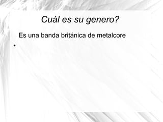 Bring Me The Horizon es una banda británica de metalcore formada en marzo de 2004 que consiste en 5 integrantes: Oliver Sykes, Matt Kean, Matt Nicholls, Lee Malia y Jordan Fish.