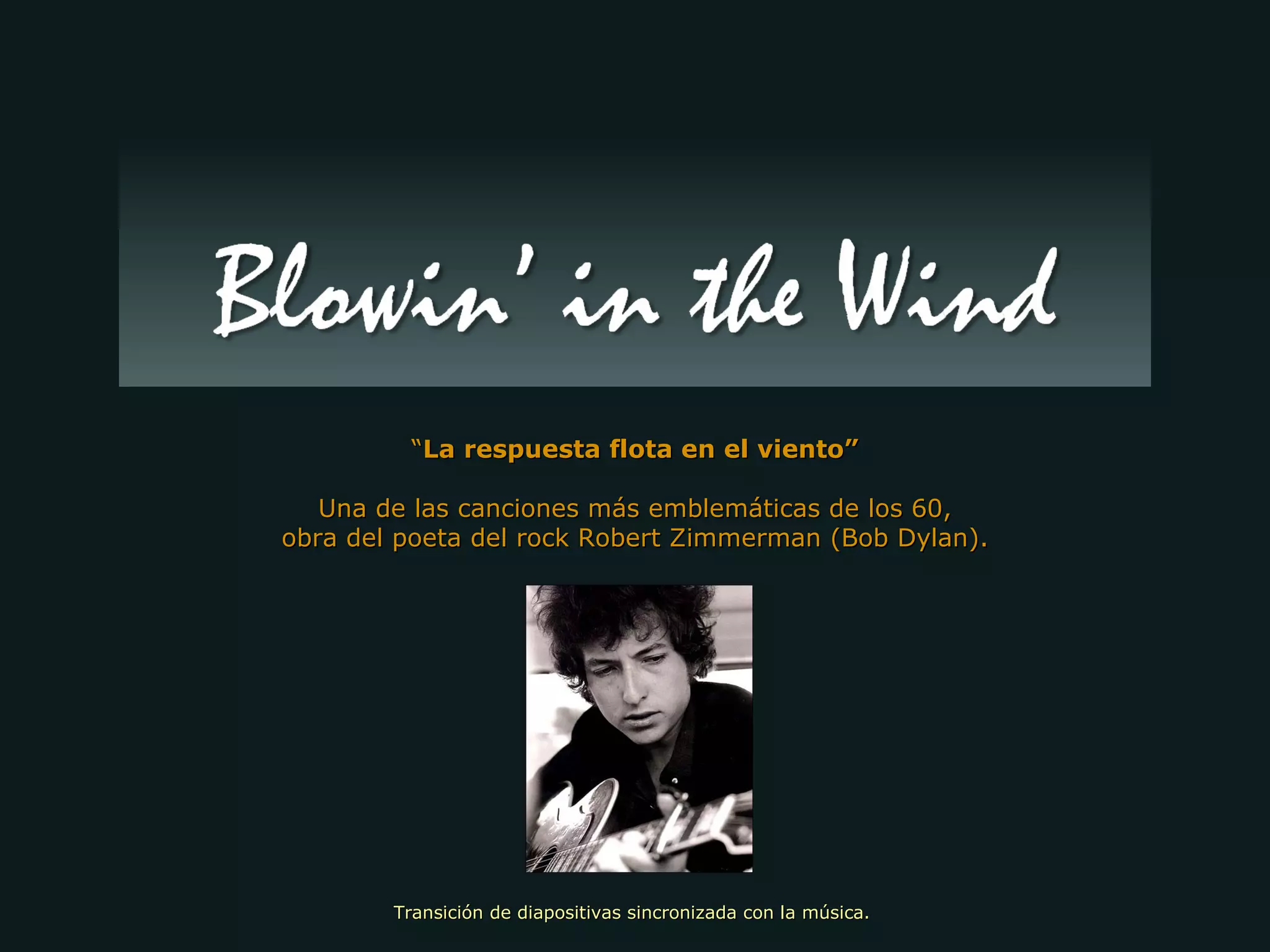 Este documento resume la canción "Blowin' in the Wind" de Bob Dylan. Escrita en 1962, plantea preguntas filosóficas sobre temas como la paz, la guerra y la libertad. La letra sugiere que las respuestas a estos grandes problemas de la humanidad no son claras sino que "están flotando en el viento". La canción se convirtió en un himno contra la guerra de Vietnam.