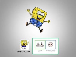 El documento habla sobre el libro de Bob Esponja y Patricio. Repite varias veces los nombres de los personajes principales Bob Esponja y su amigo Patricio. También menciona a la autora Juana Bayo y la procedencia e información de licencia de los pictogramas utilizados.