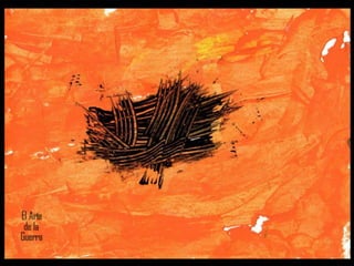 El documento presenta un resumen del libro El Arte de la Guerra de Sun Tzu en forma de bocetos. Los bocetos representan conceptos clave del libro como la naturaleza, la sabiduría, la calma, la agresividad y la muerte.