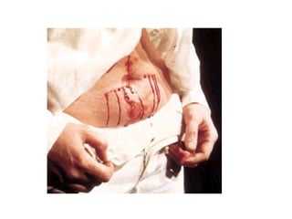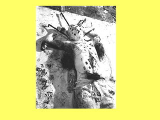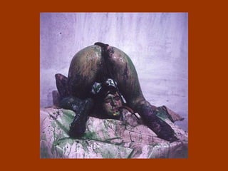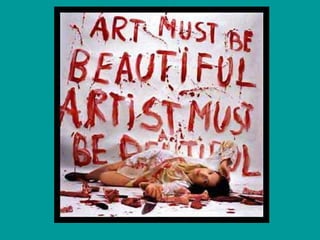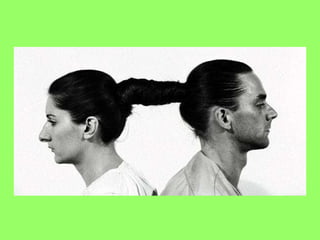 El documento resume las obras y carreras de varios artistas pioneros del arte corporal y de performance en las décadas de 1960 y 1970, incluyendo a Yves Klein, Piero Manzoni, Gina Pane, Chris Burden, Hermann Nitsch, Günter Brus, Otto Muehl, Rudolf Schwarzkogler, Vito Acconci, Dennis Oppenheim, Valie Export, Peter Weibel, Marina Abramovic y Ulay. Sus obras a menudo involucraban el uso explícito de su propio cuerpo, sangre, dolor y riesgo para expl