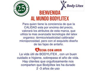 BODYLITEX soporte reductivo que te ofrece mas que una faja. 25 años de experiencia nos respaldan. DISMINUYE AL INSTANTE HASTA 2 TALLAS CINTURA AL INSTANTE COMPACTACION DE BAJO VIENTRE CORRECCION DE POSTURA (CAUSA #1 ENFERMEDADES DE COLUMNA) MALA POSTURA Y SOBREPESO OCASIONAN DEFORMACION DE COLUMNA . BODYLITEX 01 800 2535569 WHATSAPP (81) 17631524 OFICINA (81) 13655978 PAGINA EN INTERNET www.bodylitex.mx (VISITA LA TIENDA VIRTUAL DE NUESTRAPAGINA WEB EN DONDE CONOCERAS TODOS NUESTROS PRODUCTOS) PORQUE TU MERECES LO MEJOR. NO ESCATIMES CON TU AUTOESTIMA Y TU CUERPO La única faja en el mercado que te ofrece un real acinturamiento diseñada en 8 gajos (las fajas comerciales estan diseñadas en solo 4 gajos); La única faja en el mercado que te cubre bajo vientre gracias a su diseño curvo y a la variedad de talles 11/13/15 broches. (las fajas comerciales solo ofrecen un talle que no tiene curvatura y saca "el gordito de bajo vientre"); La única faja que realmente te reduce tallas por su látex orgánico sin causar flacidez en tu piel (fajas comerciales usan látex sintético que tapa los poros) La única faja en el mercado que realmente te ofrece un soporte para la espalda gracias a sus tirantes de látex que te dan el jalón en la espalda (fajas comerciales usan tirantes de brassiere que no ayudan en nada a soporte); POR TODAS ESTAS RAZONES BODYLITEX VALE LO QUE CUESTA. NO ESCATIMES EN TU AUTOESTIMA NI EN TU CUERPO, DATE LO QUE MERECES. En 018113655978 , WHATSAPP 8117631524o por inbox FACEBOOK. Correo gamaaraicojorge@gmail.com