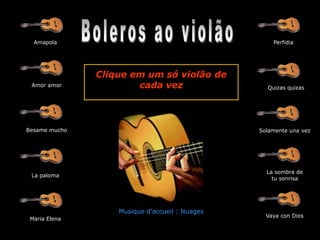 Este documento lista 10 canciones populares en español y francés, así como una pieza musical de introducción. Las canciones incluyen "Amapola", "Besame mucho", "Quizas quizas", "Maria Elena" y "Vaya con Dios".