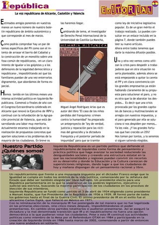 El boletín trata sobre las actividades de Izquierda Republicana en marzo de 2010, incluyendo su oposición a los planes de demoler el barrio Cabañal en Valencia y construir un monolito sobre una fosa común de republicanos. También discute la crisis económica y despidos, y las acciones legales de IR contra ex miembros que se hacen pasar por representantes del partido.