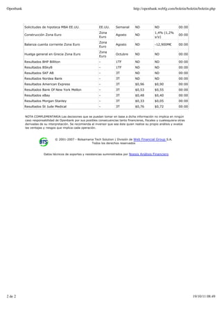El documento resume las claves para la sesión bursátil del día, incluyendo datos económicos importantes de EE.UU. y la zona euro. También resume el cierre de Wall Street del día anterior, con fuertes pérdidas, y proporciona soportes y resistencias técnicas para varias empresas.