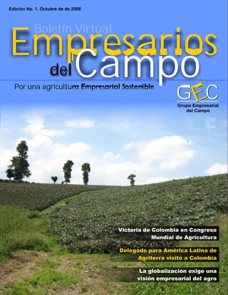 El documento resume las noticias más relevantes del sector agrícola colombiano. Colombia obtuvo la vicepresidencia para América Latina de la Federación Internacional de Productores Agropecuarios (FIPA), y el apoyo continuo de la FIPA para la producción de biocombustibles. También se anunció una donación holandesa de 50 millones de euros para proyectos de pequeños agricultores a través del Fondo de Programas de Ayuda al Desarrollo de la FIPA. Finalmente, el representante de América Latina de la agencia