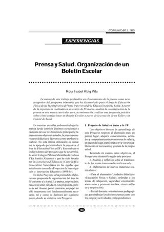 Este documento describe la organización de un boletín escolar sobre salud y educación física en una escuela primaria. Se creó un taller de salud dirigido por un comité de estudiantes para planear actividades relacionadas con la salud. El boletín escolar se propuso como un vínculo entre las sesiones de educación física y las actividades del taller de salud. El documento explica el proceso de organización del boletín, incluyendo la asignación de secciones a grupos de estudiantes y los temas generales que cubriría