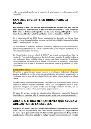 Se decidió extender el horario de verano en San Luis debido a inconvenientes planteados por sectores empresariales con el cambio de hora. Se mantendrá el huso horario -3 GMT hasta nuevo aviso. Además, se informó sobre nuevas obras de infraestructura sanitaria en la provincia y sobre el software educativo Aula 1 a 1 disponible para estudiantes puntanos. Finalmente, se reportó un récord en la recaudación de impuestos provinciales durante marzo.