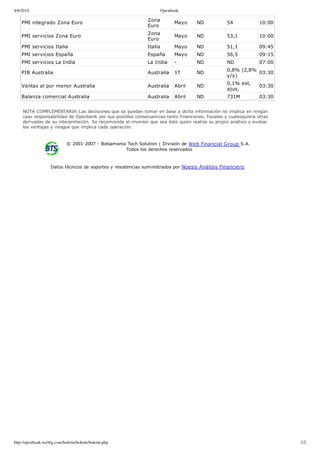 El documento resume las claves de la sesión bursátil del día, incluyendo los datos económicos más relevantes que se publicarán. Señala que la atención estará puesta en los indicadores de actividad económica en Europa y Estados Unidos, así como en el informe de empleo estadounidense del viernes. Finalmente, proporciona los niveles de soporte y resistencia esperados para los principales valores del Ibex 35.