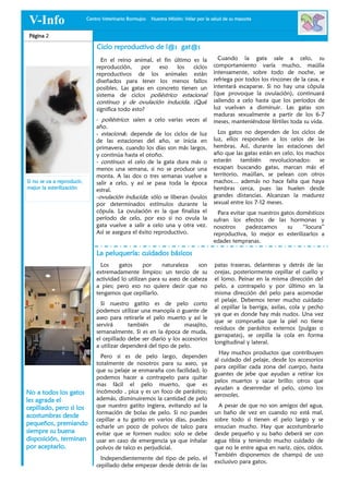 El boletín ofrece información sobre los beneficios de tener un gato, incluyendo su capacidad para reducir el estrés y mejorar la salud mental de las personas. También se abordan aspectos de la salud y bienestar de los gatos, como su ciclo reproductivo, cuidados básicos y la importancia de la vacunación y desparasitación. Además, se detalla la historia y características del gato común europeo.