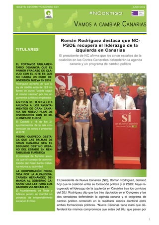 La coalición entre el PSOE y Nueva Canarias (NC) recupera el liderazgo de la izquierda en Canarias tras las elecciones del 26J, obteniendo 3 escaños en total, 2 en Las Palmas y 1 en Tenerife. En Las Palmas ganan más de 3,600 votos respecto a diciembre y superan a Unidos Podemos, manteniendo los 2 escaños. Sin embargo, pierden un escaño en Tenerife al retroceder 2,021 votos. El presidente de NC destaca el trabajo realizado a pesar del context