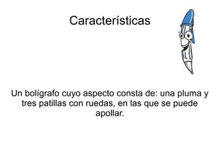 Este bolígrafo funciona mediante un micrófono incorporado que capta la voz del usuario y la transforma en una señal electromagnética para escribir automáticamente. Aunque no se puede usar en exámenes por requerir hablar en voz alta, sirve para tomar apuntes de forma hands-free. Su precio es de 4€ debido a que usa materiales reciclables y los recambios de tinta cuestan 0,60€.