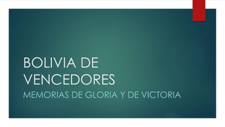 El documento narra la historia de Bolivia desde la guerra de independencia en 1809 hasta el conflicto del Chaco, destacando las luchas, victorias y sacrificios de sus líderes. Se mencionan la invasión brasileña y la intervención peruana, así como la creación de la Confederación Perú-Boliviana y las guerras con Argentina y Perú. A pesar de las victorias, se concluye que los tratados de paz reflejan la falta de objetivos cumplidos por ambos lados en los conflictos.