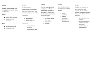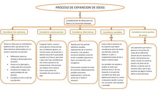 El documento describe varios procesos mentales para la generación y evaluación de ideas. Estos incluyen considerar los extremos, consecuencias y alternativas de una situación, así como las variables relevantes y los diferentes puntos de vista. También describe procesos de contracción de ideas como definir objetivos, establecer reglas, considerar prioridades, planificación y toma de decisiones. Se proveen ejemplos para ilustrar cada uno de estos procesos.