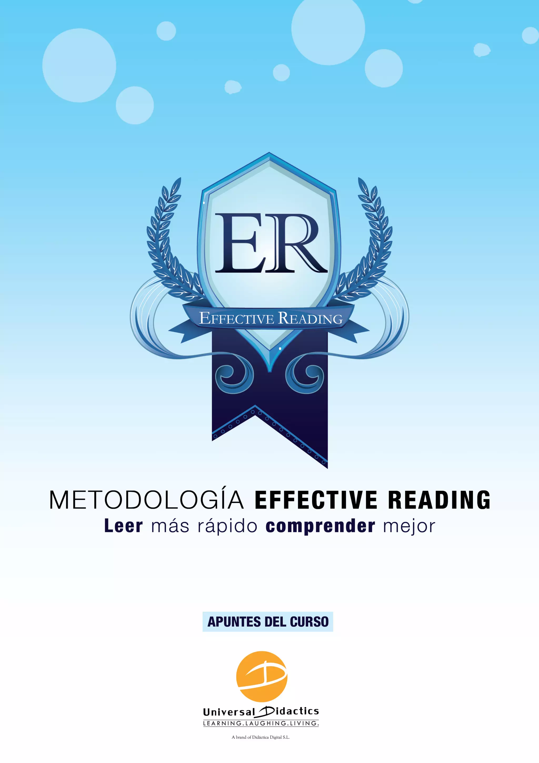 Este documento presenta un curso sobre técnicas avanzadas de lectura eficaz. Explica que el objetivo del curso es mejorar la velocidad, comprensión y retención de la lectura. Se detalla que el curso enseñará doce técnicas, incluyendo reducir la subvocalización, evitar la regresión involuntaria, y agrupar palabras para leer más rápido y con mejor comprensión. El documento también incluye apéndices sobre puntuación y la historia de la lectura rápida.