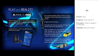 El documento describe un juego de motocross en el que los participantes montarán una réplica de moto conectada a un videojuego para acumular puntaje y optar a premios. La experiencia incluirá tomar fotos de los participantes jugando y en un podio de premiación para promocionar en redes sociales el celular Motorola DEFY MINI.