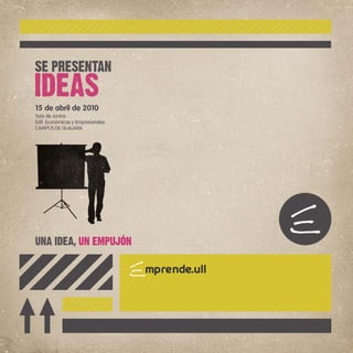 Este documento presenta 5 proyectos empresariales innovadores desarrollados por estudiantes o egresados de la Universidad de La Laguna. Los proyectos incluyen una plataforma online para gestionar la reputación hotelera, la producción de insecticidas naturales a partir del árbol del neem, un centro para el bienestar basado en la psicología positiva, una consultoría de eficiencia energética y una empresa que ofrece servicios de traducción e interpretación. Cada proyecto describe su actividad, promotores, potencial competitivo y prev