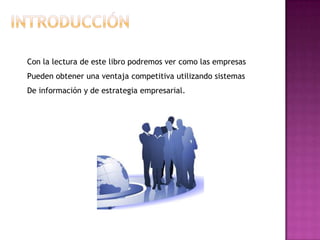 Este documento describe cómo las empresas pueden obtener una ventaja competitiva utilizando sistemas de información y estrategia empresarial. Explica que la tecnología de la información es crucial para que los ejecutivos tomen las mejores decisiones estratégicas y habla sobre la alineación entre la estrategia de negocios y la estrategia de tecnología de la información. También analiza los dominios internos y externos de una empresa y cómo ISAC PANAMA puede mejorar su estrategia y servicios mediante un mejor uso de sus sistemas de