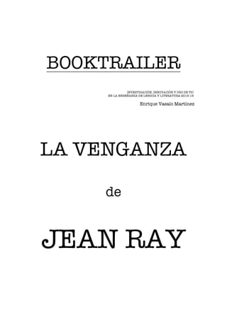 Este documento describe el proceso de creación de un booktrailer para promover la lectura de la obra "La venganza" de Jean Ray entre estudiantes de cuarto de la ESO. Incluye una sinopsis de la obra, que trata sobre un hombre que vive aterrorizado en una vieja casa tras haber asesinado a su padre, y experimenta fenómenos extraños. También incluye un storyboard del booktrailer y una reflexión positiva sobre la experiencia de crear el booktrailer para motivar a los estudiantes a leer la obra de Jean Ray.