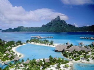 Bora Bora es un lugar paradisíaco que muchos sólo pueden ver en fotos debido a su alto costo. El documento reconoce que aunque es tentador soñar con viajar a lugares exóticos, es mejor centrarse en el trabajo para poder alcanzar metas.