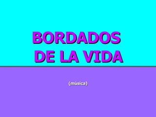 El documento habla sobre cómo cuando el autor era niño, no entendía lo que su madre estaba haciendo al bordar, ya que desde abajo parecía desordenado y confuso. Un día, su madre lo levantó y él pudo ver el hermoso diseño del bordado desde arriba. De manera similar, a veces no entendemos los planes de Dios para nuestras vidas porque los vemos desde abajo, pero él está creando un diseño hermoso.
