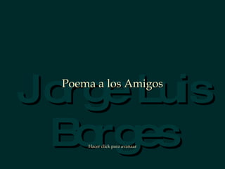 El poema habla sobre la amistad y lo que un amigo puede y no puede hacer por otro. Un amigo puede escuchar y compartir, pero no puede cambiar el pasado o futuro de otro ni evitar que tropiece. Aunque no puede eliminar el sufrimiento de otro, puede llorar con él. Lo más importante es que un amigo puede ofrecer su apoyo y amor incondicional.