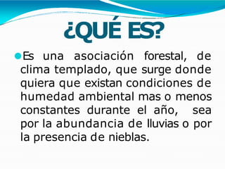 Los bosques de niebla son ecosistemas que se desarrollan donde hay humedad ambiental constante durante el año, ya sea por abundantes lluvias o por la presencia de nieblas. En México, estos bosques se han reducido al menos en un 50% debido a actividades humanas como el cultivo del café, árboles frutales y ganadería extensiva. Los bosques de niebla albergan alrededor del 11% de las especies de plantas de México y son hogar de diversos animales como el guan cornudo, águila real y ser