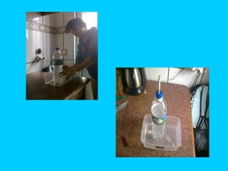 Este documento describe un experimento llamado "La botella fumadora" para mostrar los efectos dañinos del tabaco. Explica los materiales necesarios como una botella, algodón, cigarrillos y agua. Detalla los pasos de colocar el algodón y hacer agujeros en la botella y tapón para que el cigarrillo se consuma al entrar oxígeno, representando los efectos del humo en los pulmones. Finalmente, explica científicamente los resultados y concluye que el tabaco contiene sustancias tóxicas que pueden caus