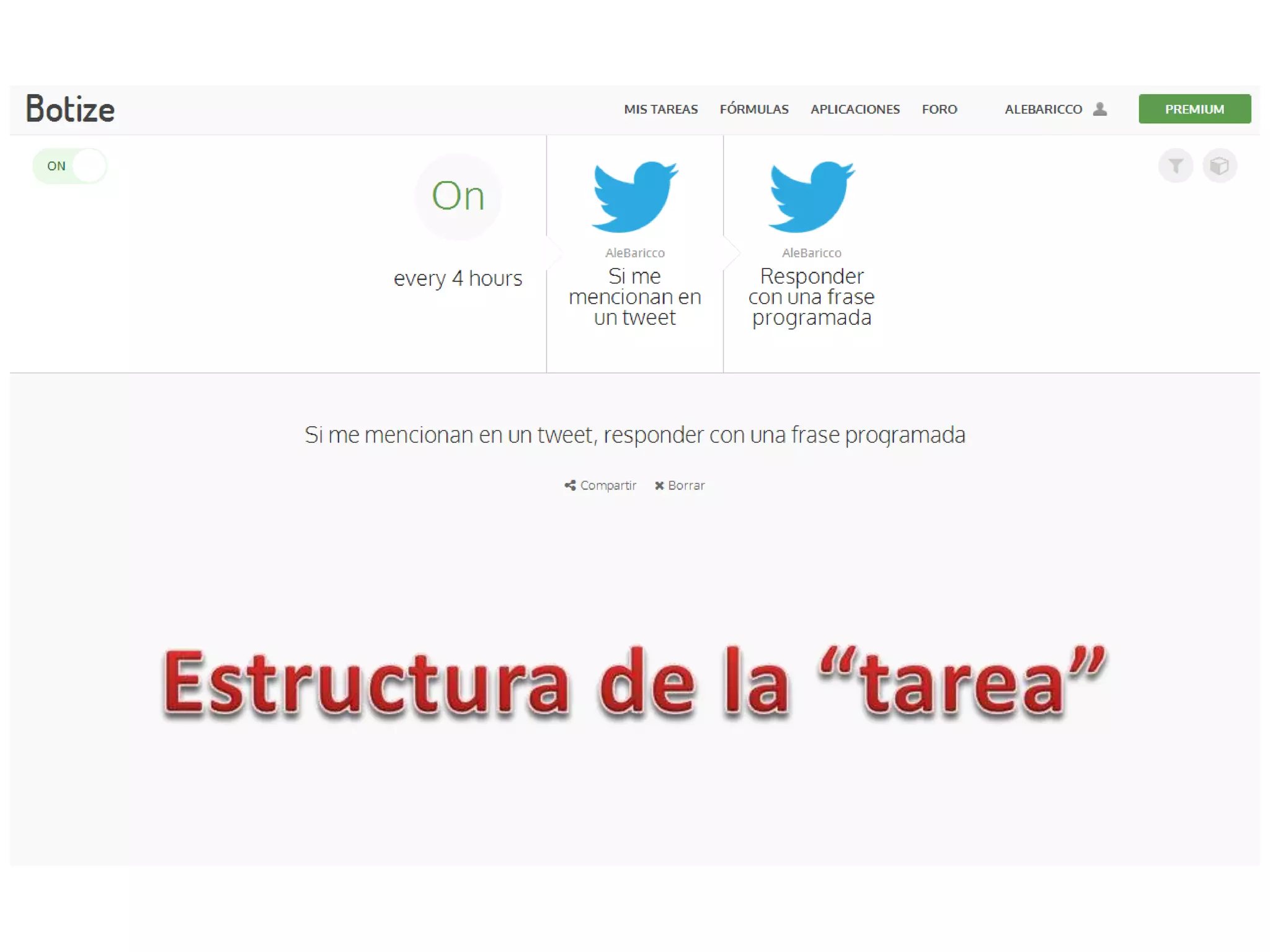 El documento explica el proceso de activar y gestionar tweets a través de un plugin, comenzando con la selección de un disparador y un receptor. Los usuarios pueden agregar múltiples tweets a una lista, y estos pueden ser organizados en orden aleatorio o secuencial. Además, se menciona cómo los tweets pueden responder a palabras específicas.