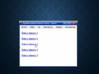 Este documento explica los conceptos fundamentales del modelo de caja en CSS, incluyendo cómo se calculan el ancho y alto de un elemento teniendo en cuenta el margen, relleno y bordes. También describe cómo CSS permite controlar los márgenes, bordes, fondos, posicionamiento, visualización, texto, enlaces, imágenes, listas, tablas, formularios y fuentes de un elemento.