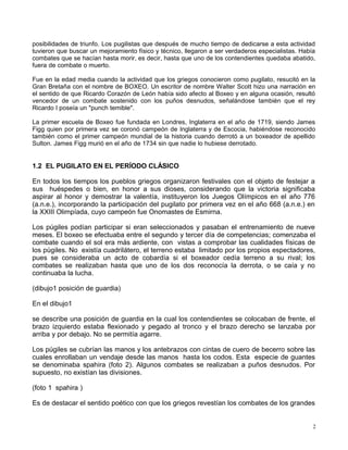 El boxeo tiene sus orígenes en la antigua Grecia donde era considerado un deporte olímpico. Los griegos combatían a puño limpio o con guantes de cuero. En la edad media resurgió en Gran Bretaña como boxeo y se establecieron las primeras reglas en el siglo XVIII. El boxeo moderno comenzó a organizarse en Inglaterra en el siglo XVIII bajo figuras como James Figg y Jack Broughton, quienes establecieron escuelas, reglas básicas y el uso de guantes livianos