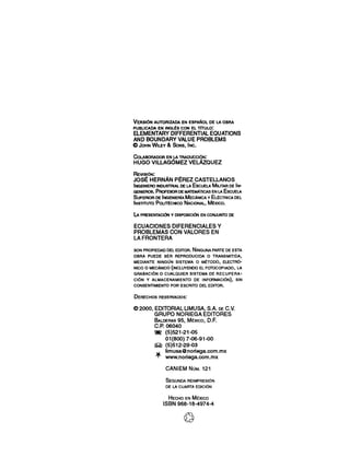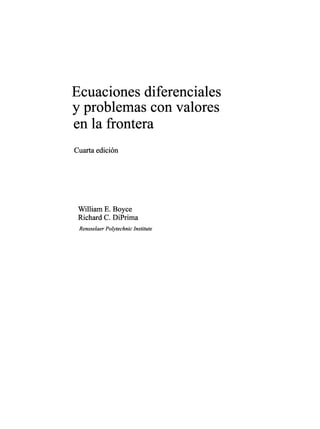 Este documento presenta un resumen de un libro sobre ecuaciones diferenciales y problemas con valores en la frontera. Explica que el proyecto Educación para Todos de la UNAM busca facilitar el acceso a materiales educativos de alta calidad mediante la digitalización y distribución gratuita de libros de texto. Se invita a la participación de voluntarios para sugerir títulos, prestar libros para su digitalización y ayudar con el proceso técnico.