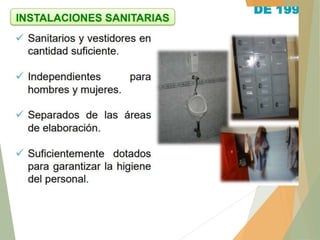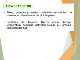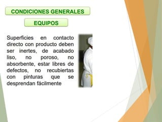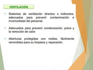 El documento habla sobre la calidad de los alimentos y la salubridad alimentaria. Explica que se fundamenta en dos pilares: 1) Prácticas correctas de higiene como los BPM y 2) Prevención de riesgos mediante la identificación de peligros. Detalla aspectos como la edificación e instalaciones, personal manipulador de alimentos, requisitos higiénicos de fabricación, identificación de puntos de riesgo en el proceso y tipos de peligros. El objetivo final es cumplir las expectativas del consumidor y