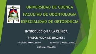Este documento presenta un resumen de la historia y principios de varias técnicas de brackets en ortodoncia, incluyendo Begg, Roth, Ricketts, Edgewise, MBT, Andrews, Alexander, Tip-Edge y autoligado pasivo y activo. Describe los aportes de pioneros como Tweed, Begg, Ricketts, Andrews, Roth, Alexander y Kesling. Explica las ventajas y desventajas de cada técnica y cómo se prescriben los diferentes tipos de brackets.