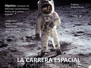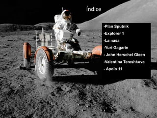 La carrera espacial comenzó con el lanzamiento del Sputnik 1 por la Unión Soviética en 1957, estableciendo a los soviéticos como pioneros. Estados Unidos creó la NASA en 1958 en respuesta y envió el Explorer 1 al espacio. Figuras clave incluyen a Yuri Gagarin, el primer humano en el espacio, y John Glenn, el primer estadounidense en orbitar la Tierra. La carrera culminó con el exitoso alunizaje del Apolo 11 en 1969, dándole la victoria a Estados Unidos.