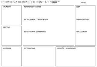 El branded content es una estrategia que busca crear contenidos significativos y emocionantes que refuercen la identidad de la marca y atraigan la atención del consumidor en la era digital. Para su éxito, las marcas deben ser propietarias del contenido, involucrarse en el proceso creativo y ser coherentes en la distribución, mientras compiten con otros creadores. Ejemplos de implementaciones exitosas incluyen casos como Cortefiel y la ONG Casa de la Amistad, que transformaron sus marcas mediante el uso de contenido narrativo y experiencias relevantes.