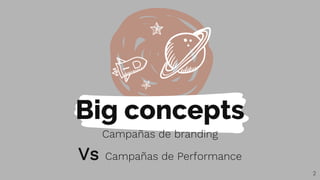Este documento discute la relación entre las campañas de branding y performance. Explica que el branding busca construir y posicionar los valores de la marca, mientras que el performance busca obtener una respuesta del público objetivo. También propone que el funnel ya no tiene etapas jerárquicas sino que se integra de forma colaborativa. Finalmente, sugiere que la conversión ya no solo es la venta, sino también otros objetivos como interacciones o suscripciones que cambien el comportamiento del consumidor en línea con la marca.