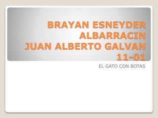 El cuento narra la historia de un molinero que le dejó a su hijo menor solo un gato al morir. El gato, inteligente, convenció al hijo de ponerle botas y juntos engañaron al rey para que el hijo se hiciera rico y se casara con la princesa. El gato utilizó su astucia para beneficiar a su amo.