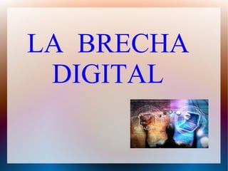 La brecha digital se refiere a las diferencias en la capacidad de usar tecnologías de información y comunicación debido a diferencias en alfabetización y habilidades tecnológicas. Los factores que contribuyen a la brecha digital incluyen la conectividad, el ancho de banda, el nivel de ingresos, la educación y la ubicación geográfica. La piratería se refiere a la copia ilegal de obras protegidas por derechos de autor e incluye la piratería de libros, películas, música