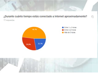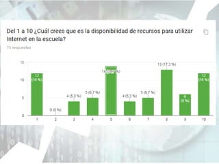 El documento describe la brecha digital de segundo nivel, que es la diferencia en la capacidad de aprendizaje debido a la calidad de los contenidos y criterios de uso de las TIC. Explica que un proceso de aprendizaje mediado por TIC puede reducir las brechas de inserción social y laboral. Finalmente, concluye que hay un bajo porcentaje de conexión a banda ancha y pobre infraestructura de acceso en las escuelas, a pesar de que los alumnos están hiperconectados.