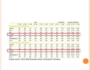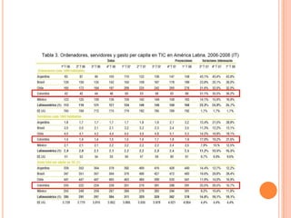 Este documento describe las brechas digitales, que son las diferencias en la capacidad de usar tecnologías de la información y la comunicación (TIC) entre grupos. Existen tres tipos de brechas digitales: de acceso, que se refiere al acceso a computadoras e Internet; de uso, que es la capacidad de usar las TIC; y de calidad de uso, que es el acceso a herramientas avanzadas en la red. La brecha digital en Colombia se debe principalmente a factores socioeconómicos como los ingresos, la infraestructura y la educación