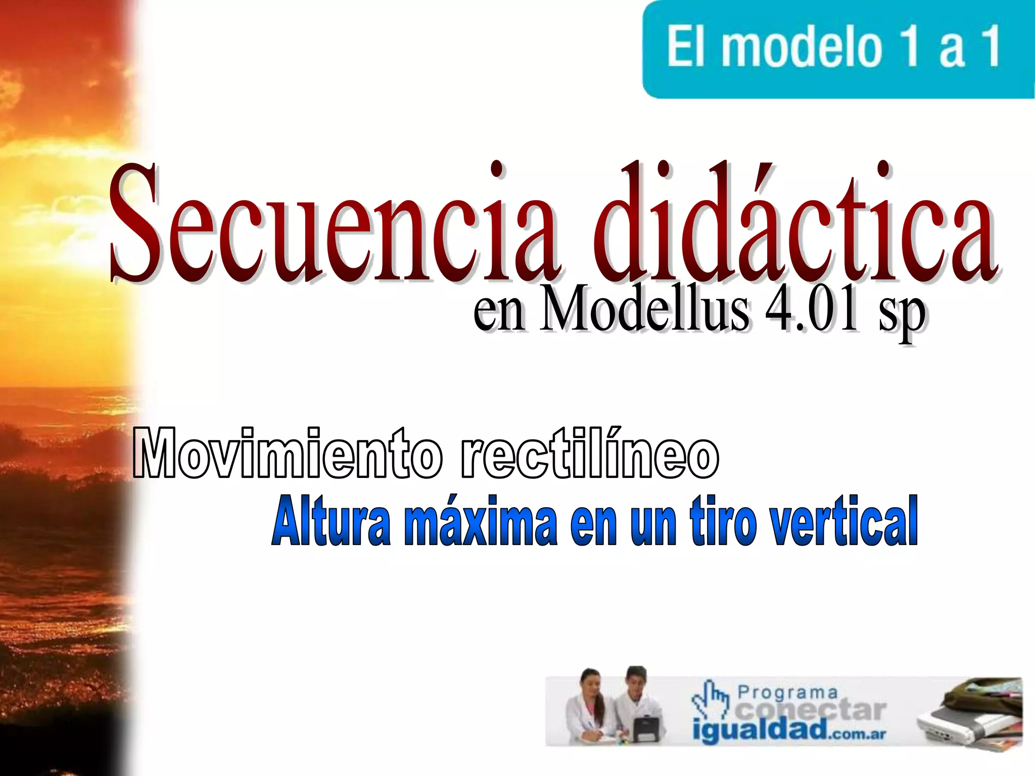 El documento presenta los pasos para resolver un problema de movimiento rectilíneo vertical usando el software Modellus. Explica cómo ingresar el modelo matemático, seleccionar una partícula para la simulación, establecer los parámetros de la animación como la variable independiente y las variables asociadas a los ejes, y reproducir la animación, gráfico y tabla de resultados. El objetivo es usar Modellus de forma interactiva para visualizar y explorar fenómenos físicos descritos por modelos matemáticos.