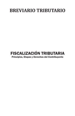 Este documento presenta un breve resumen de los principios constitucionales y legales que rigen la fiscalización tributaria en un país, incluyendo los derechos de los contribuyentes y las etapas del proceso de fiscalización. Explica conceptos clave como la administración tributaria, la acción fiscalizadora y los recursos administrativos disponibles para los contribuyentes. Además, incluye modelos de documentos utilizados en el proceso de fiscalización y referencias a disposiciones legales sobre el tema. El objetivo es informar a los contribuyentes