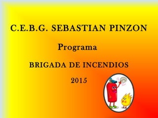 La brigada de incendios del centro educativo C.E.B.G. Sebastián Pinzón tiene como objetivo transmitir conocimientos sobre prevención de incendios a estudiantes y personal. La brigada está integrada por 8 maestros y personal administrativo coordinados por un maestro. Su plan de acción incluye capacitación, identificación de riesgos, simulacros y apoyo a bomberos en caso de incendio.