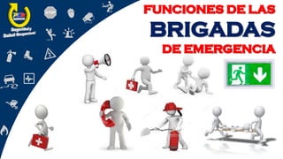 Este documento presenta información sobre la gestión de brigadas de emergencia. Explica los tipos de emergencias, las responsabilidades de la alta gerencia y los jefes de brigada, los requisitos para ser brigadista, la estructura de las brigadas, el número de brigadistas requeridos, la formación y capacitación, la identificación, y las funciones de las brigadas contra incendios, de evacuación, de primeros auxilios y de comunicación antes, durante y después de una emergencia. También cubre temas como simulacros y sim