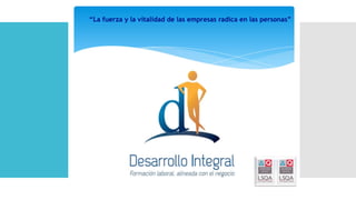 Desarrollo Integral Consultores es un grupo de empresas de consultoría y capacitación formado hace más de 12 años. El grupo está compuesto por tres empresas que ofrecen programas de capacitación, consultoría en recursos humanos, arriendo de salas y servicios de catering y merchandising. La propuesta de valor es ofrecer soluciones integrales para la gestión del capital humano, consultoría y capacitación alineadas con los objetivos del negocio.