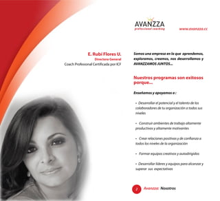 Avanzza es una empresa dedicada al desarrollo personal y profesional a través de diversos programas de coaching y formación. Ofrecen entrenamientos prácticos que fomentan la comunicación, la creación de equipos efectivos y el desarrollo de habilidades críticas como la confianza y el manejo de conflictos. Sus metodologías están diseñadas para mejorar la productividad y motivación en el entorno laboral, utilizando herramientas innovadoras y evaluaciones de desempeño.