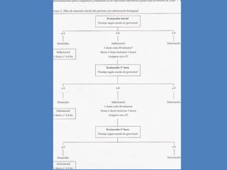 La bronquiolitis es una enfermedad aguda causada principalmente por virus que afecta los bronquios en niños menores de 2 años, causando obstrucción e inflamación. Los síntomas incluyen tos, dificultad para respirar, sibilancias y fiebre. El tratamiento se enfoca en medidas de soporte como posición semisentada y oxígeno, así como broncodilatadores. Los corticoides y antibióticos solo se usan en casos específicos. Los factores de mal pronóstico son apnea, cianosis y alta p