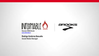 Este documento describe la estrategia de redes sociales de Brooks Chile. El objetivo principal fue crear una comunidad participativa de corredores. Para lograr esto, la estrategia se enfocó en identificar los intereses de los corredores y reflejarlos en las publicaciones. Adicionalmente, se usaron concursos en redes sociales para promover las carreras y aumentar las inscripciones de forma digital. Esto resultó en mayor participación comunitaria. Finalmente, se desarrolló una plataforma para "comprar" zapatillas a cambio de nuevos seg